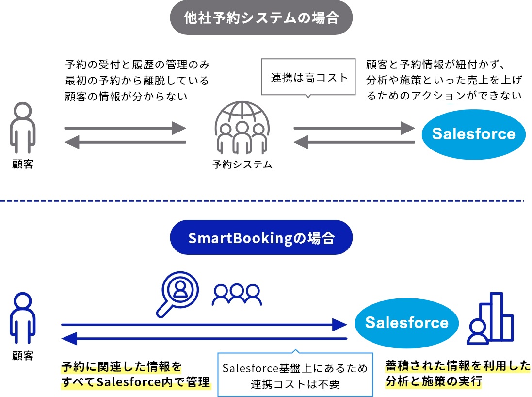 Salesforceに蓄積された顧客情報と予約システムのデータを統合することで、